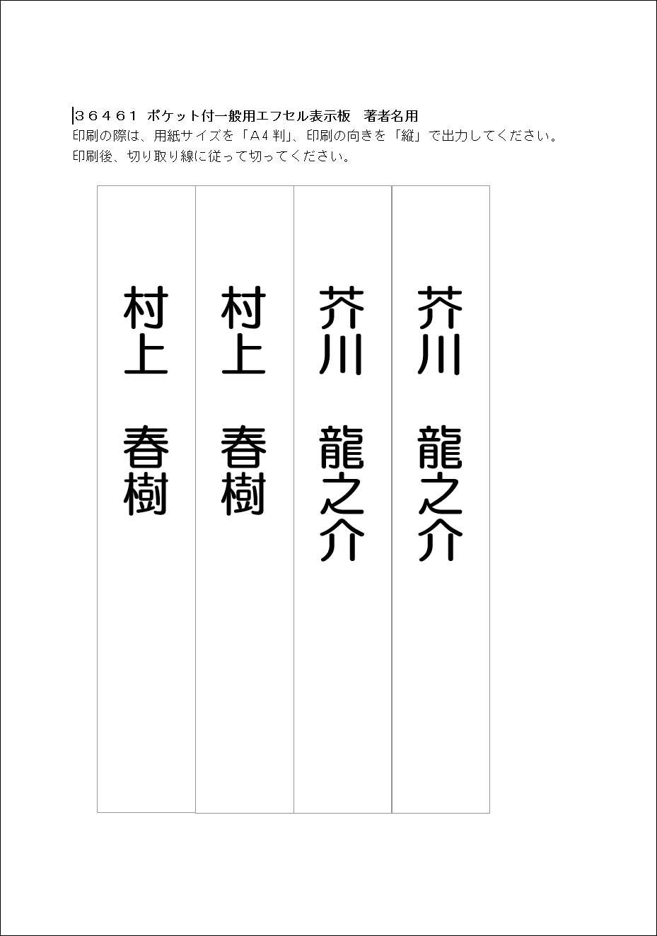 印刷後、切り取り線に従ってハサミなどで切ってください。